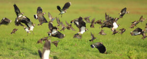Spreeuwen gebruiken kieviten als landingsplaats / foto’s Bennie van der Weide